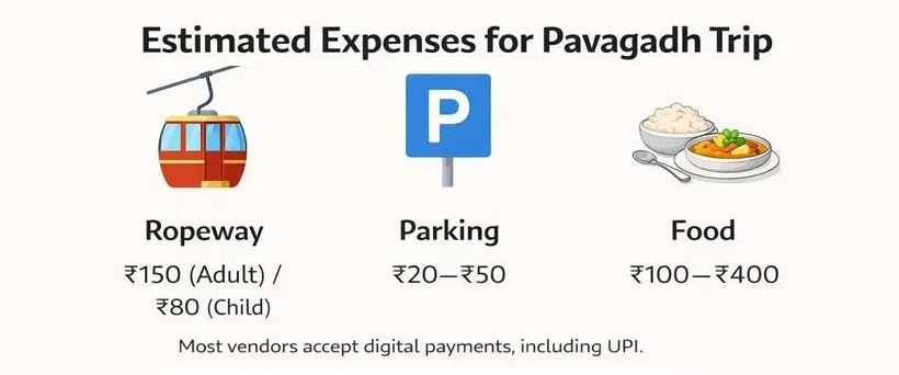 The cost of a trip to Pavagadh is usually low, making it accessible for both budget travelers and families. The cost is mostly for transportation, tickets, and food.