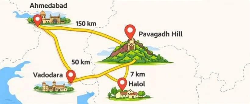 - Halol to Pavagadh: 7 km