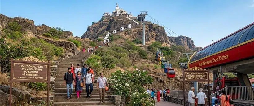 There are some queries that people generally have, like the number of steps, the time taken, and the availability of the ropeway service at Pavagadh. The height that needs to be climbed depends on where you start your journey from and how you reach your destination. Normally, people take a hybrid route, where they take a road or a vehicle till Machi, and then they take the ropeway service for the rest of the journey, where they have to climb 250-300 steps on foot.